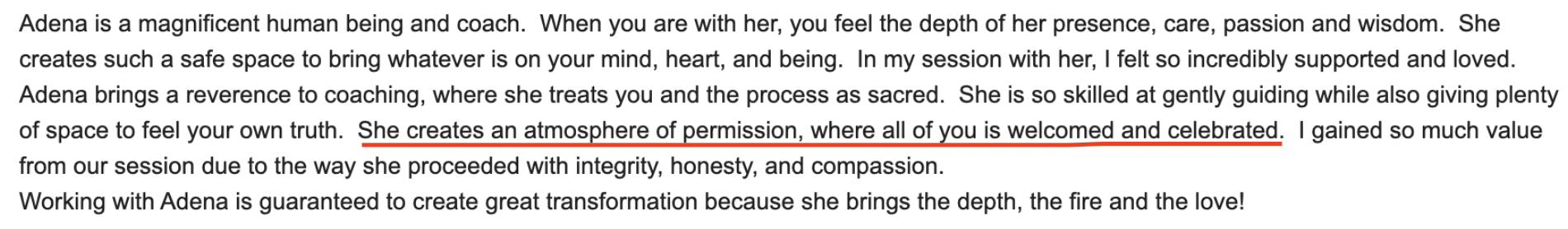 A space to be witnessed, coached, and supported as you integrate this work into your real life.